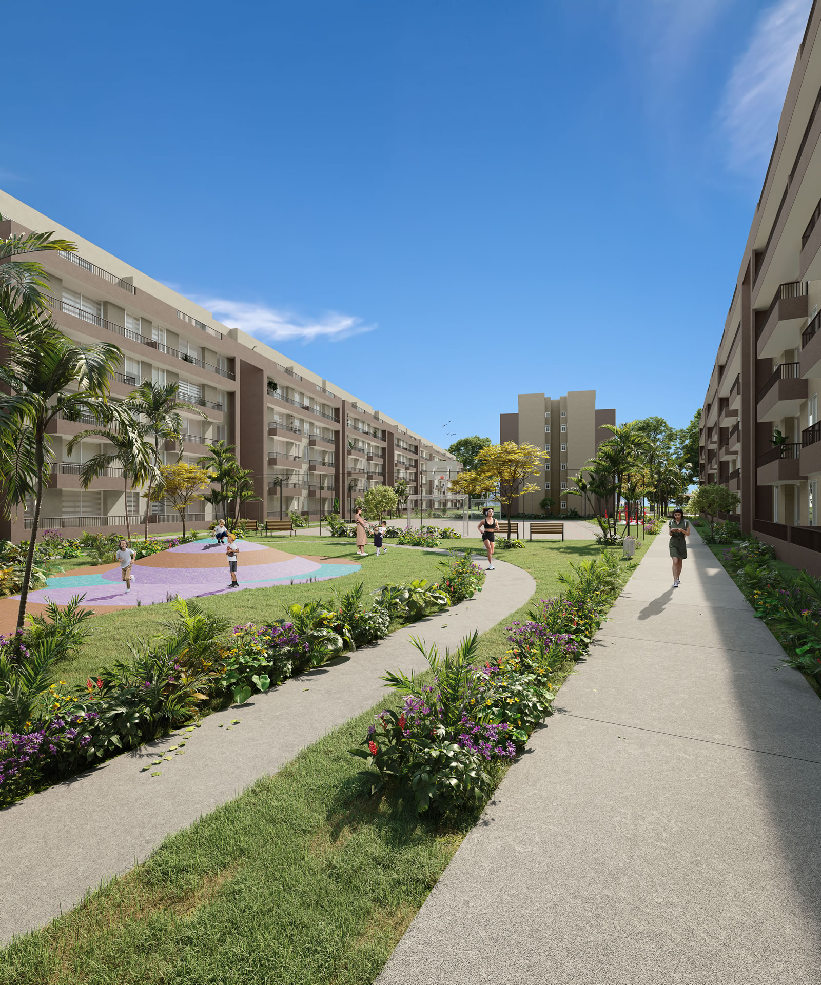27 torres de 5 pisos más 1 altillo. Apartamentos con área total construida desde 33,08m2 / área privada desde 29,91m2, y una amplia oferta de zonas comunes destinadas a la recreación y el uso de sus residentes.